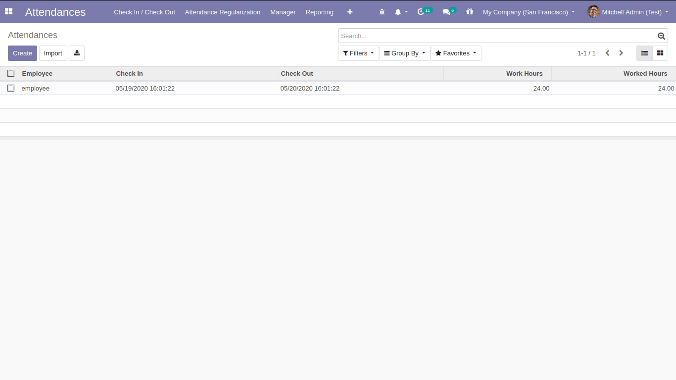 3. Now the Attendance Request is generated the manager can either 'Approve' or 'Reject' the request