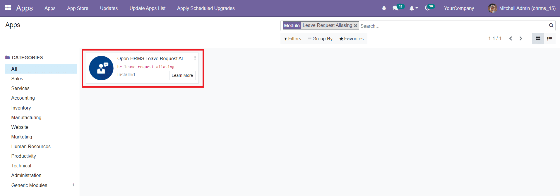 This chapter will give you a detailed description of the Open HRMS Leave Request Aliasing module.